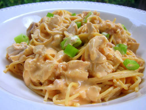 We absolutely loved the flavors in this dish. This does have a nice kick to it. Feel free to adjust the hot sauce to your desired level of heat. I like spicy food, so I went for the full 1/2 cup. We topped the pasta with some green onions for color and a little crunch. Give this a try. I promise you won't be disappointed.