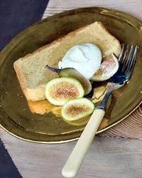 5.Using a serrated knife, cut the pound cake into thick slices and transfer to plates. Top each slice with a large dollop of mascarpone, drizzle with the rosemary syrup and serve with sliced figs, if using.