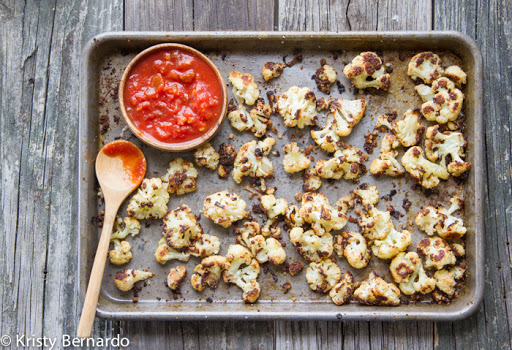 Toss cauliflower florets with olive oil on a baking sheet. Season well with salt and pepper.