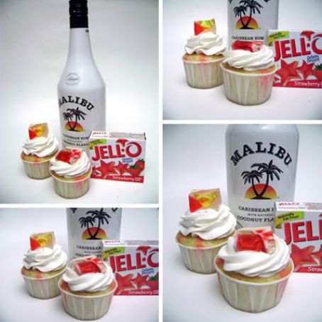 What fun! Jello Shot Cupcakes with Malibu coconut rum topped with whipped cream.