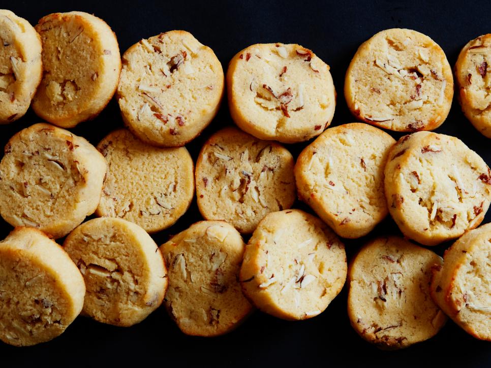 Slice the dough into 1/2-inch-thick slices and place on the prepared baking sheet. Bake until the edges are golden brown, 18 to 20 minutes. Let cool before serving; the cookies will firm up as they cool.
