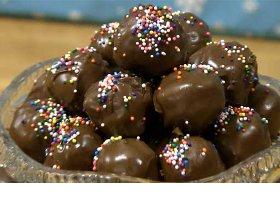 Before chocolate can set, sprinkle top of peanut butter balls with sprinkles or chopped walnuts or pecans. Let rest on baking sheet for at least 1 hour or until chocolate is set.