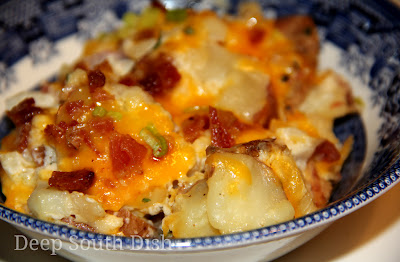 Cook's Notes: Double for a cookout, potluck or church supper. Leftover baked potatoes are perfect for this, so if you're already baking some, bake extra, or bake the potatoes ahead to save time. Also good for smoked potatoes.