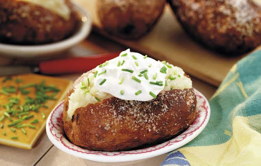 “These were my mom's favorite baked potatoes. She loved the delectable, crisp skin.”