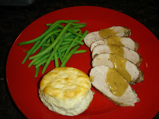 * The sauce was DARN GOOD! You must make the sauce. If you don't have any oil left in your pan after you're done searing the tenderloin, add a tsp. or a pat of butter before adding the flour for the roux.