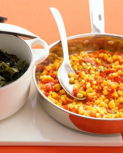 Add corn and tomatoes; cook, stirring often, until corn is tender and tomatoes have softened, about 10 minutes. Stir in milk; remove from heat. Serve immediately.