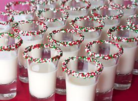 1To decorate the rims of the glasses, dip edge into frosting, then into sprinkles.