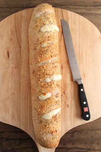 Brush beaten egg over the top. Sprinkle evenly with Parmesan, oregano, and salt. Slice shallow diagonal cuts about 2 inches apart on the top of the stromboli.