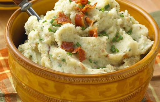 “Always-popular mashed potatoes corral even more fans when they’re rounded up with ranch dressing,chives and bacon.”