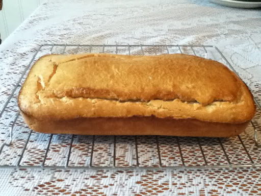 Pour into a sprayed 8 1/2" by 4 1/2" loaf pan and smooth the top.
