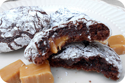 *We found that after these cookies cool down, the caramel in the middle hardens. We popped them in the microwave for a couple of seconds before eating them and the caramel melted right up! They are so good warm!