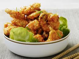 Prepare the shrimp: Heat about 2 inches of vegetable oil in a heavy-bottomed pot or Dutch oven over medium heat until a deep-fry thermometer registers 350 degrees. Meanwhile, whisk the eggs in a shallow bowl. Whisk the flour, cornstarch and 1 teaspoon each salt and pepper in another shallow bowl.