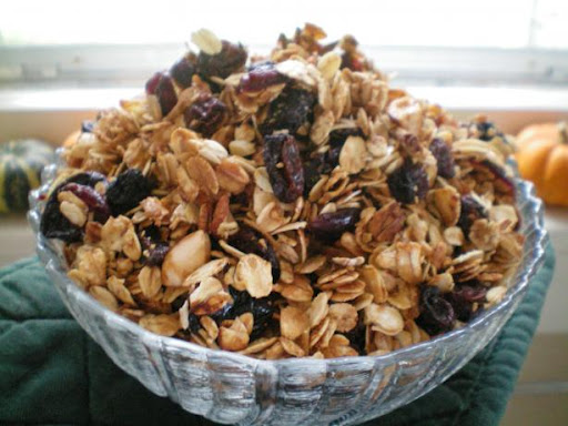Bake 15 minutes, stirring occasionally. Stir granola and bake until mixture is golden brown, 15 minutes. Stir granola and let cool a little and return to oven for 10 more minutes (for more crunch).