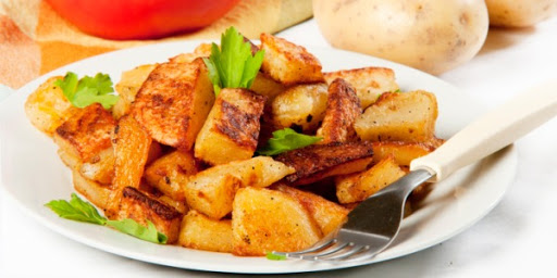 Deep fry the boiled potatoes until golden and crisp, drain excess oil on absorbent kitchen paper and put them into a bowl.