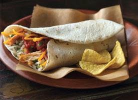 1 Burrito: Calories 350 (Calories from Fat 110); Total Fat 12g (Saturated Fat 4 1/2g, Trans Fat 0g); Cholesterol 45mg; Sodium 940mg; Total Carbohydrate 41g (Dietary Fiber 2g, Sugars 2g); Protein 19g Percent Daily Value*: Vitamin A 6%; Vitamin C 0%; Calcium 15%; Iron 15% Exchanges: 2 Starch; 1/2 Other Carbohydrate; 0 Vegetable; 2 Lean Meat; 1 Fat Carbohydrate Choices: 3