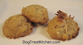 Making wheat and gluten free dog treats could be intimidating at first glance. This dog treat recipe takes the "scary" out of the equation. Bake up a batch of these tropical morsels and you'll see that using new flours is a piece of cake, or a piece of sweet dog cookie.