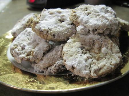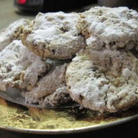 Drop by spoonfuls or scoop on to baking sheet. Cook at 375°F for 12 minutes. Remove, press tops into powdered sugar while hot flip over and let cool.