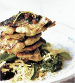 5. Arrange the eggplant around the mackerel, drizzle the dish with the sauce, and more grated lemon zest, and serve.