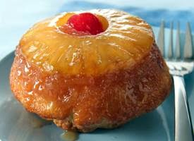 2. In small bowl, mix butter, corn syrup and brown sugar; divide evenly between custard cups. Place 1 pineapple slice and 1 cherry into each custard cup; top each with 1 biscuit. Place custard cups on cookie sheet.