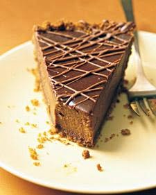 A hidden layer of bittersweet chocolate coats the crumb crust, semisweet imparts a silken smoothness to the customary custard, and a drizzle of milk chocolate on top teases the eye -- and the appetite.