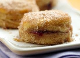 1. Heat oven to 375°F. In small bowl, place melted butter. In another small bowl, mix sugar and cinnamon; set aside. Stir jelly until smooth. Seal tip of large baster with foil. Remove rubber bulb. Spoon jelly into baster; replace bulb.