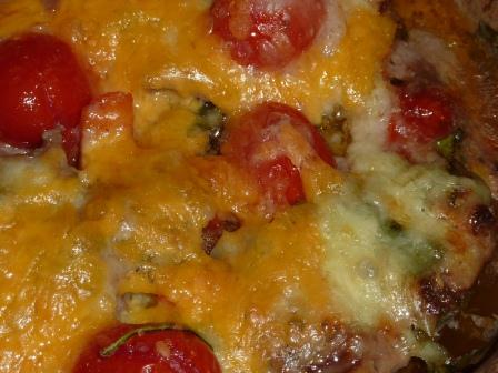 Spread in a 9X13 pan and cover with cheese. Bake at 350 F for about 35 minutes.