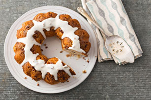 LOOSEN cake from sides of pan with knife. Invert cake onto plate; drizzle with icing.