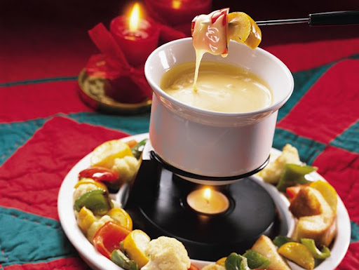 In French, the word fondue means "melted." In gastronomy, a fondue is a recipe cooked and served in a heated pot right at the dinner table. Cheese fondue and chocolate fondue are popular in the United States. In vogue in the 1970s, fondue is making a comeback, particularly for relaxed entertaining.