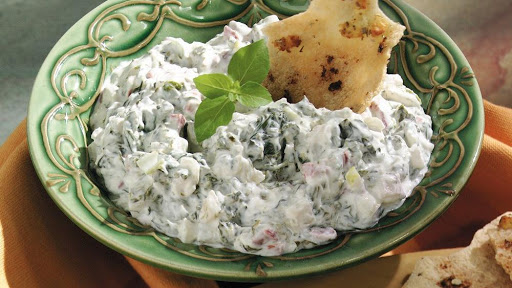 Stir in spinach, onions, pimientos and water chestnuts. Cover; refrigerate at least 2 hours to blend flavors. Serve with assorted crackers or cut-up fresh vegetables.