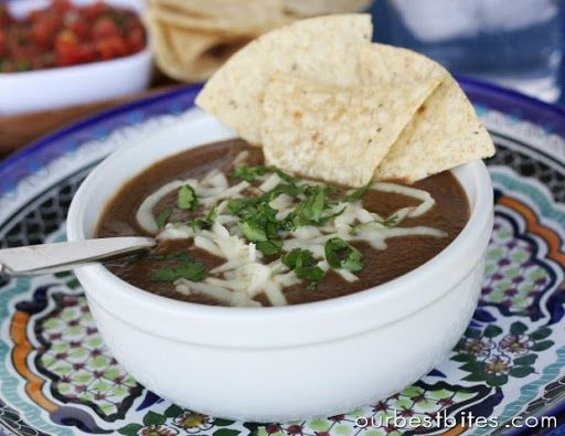 Black bean soup seasoned with spicy salsa, cumin and lime is perfect on chilly winter evenings. Served with a dollop of plain yogurt and a side of steaming tortillas this soup hits the spot.