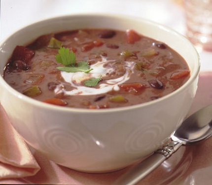 Black bean soup seasoned with spicy salsa, cumin and lime is perfect on chilly winter evenings. Served with a dollop of plain yogurt and a side of steaming tortillas this soup hits the spot. Source: Nestle Very Best Meals