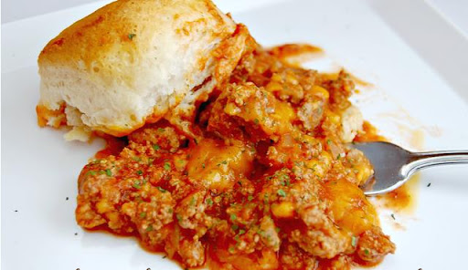 Place biscuit around the edge of the dish, leaving the middle open. Bake for 18-20 minutes or until biscuits are brown and cheese is bubbly.