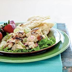 Inspired by the popular curried chicken salad, this recipe calls for an Indian tandoori-style yogurt marinade for the chicken. Then it's grilled, chopped, and stirred together with tangy dressing, which includes store-bought mango chutney. If you prefer more spicy heat, add a bit more ground red pepper.