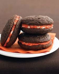 Make home made Whoopie pies and fill them with a delicious fluffy frosting, then roll them in orange sanding sugar or nonpareils for Halloween.