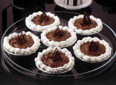 2. Beat 2/3 cup whipping cream until stiff in small bowl; fold into chocolate mixture. Divide evenly into crusts. Cover; refrigerate until firm. Just before serving, beat remaining 1/3 cup whipping cream, powdered sugar and vanilla until stiff; serve on tarts as garnish. Refrigerate leftovers. 8 servings.