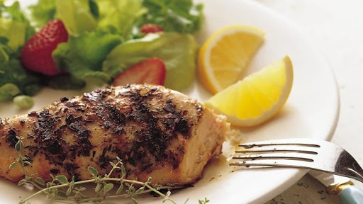 3. Cover and grill chicken over drip pan or over unheated side of gas grill and 4 to 6 inches from medium-high heat 15 to 20 minutes, turning once, until juice of chicken is clear when center of thickest part is cut (170°F). Garnish with additional fresh thyme if desired.