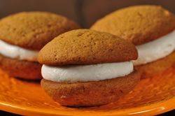 Pumpkin Whoopie Pies take two round, domed shaped pumpkin flavored cookies and sandwiches them together with a soft and creamy vanilla filling. The debate is ongoing, but they have their origins in either the Amish country of Pennsylvania or in New England. Nancy Baggett in her book "The All-American Cookie Book" gives an excellent account of their history. She tells us that they can be traced back to the depression era and the Berwick Cake Company of Boston was the first to start making them commercially (around 1926). Although we may never know who or how someone came up with these delicious cookies, the story is that one day a creative cook had leftover cake batter and decided to make large round cookies with it. When they turned out, the cook was heard to say "Whoopie!" "Pies.". If you are wondering why they are called "Pies", it is because cakes were once baked in pie tins, so the two names often became interchangeable.
