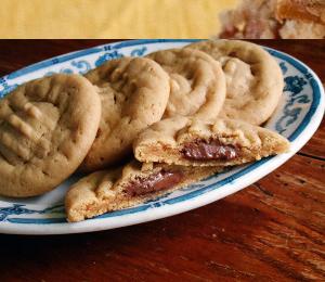 Place a Hershey's Drop candy in the center of the cookie dough. Close the cookie dough around the filling, forming a ball. Roll gently in your hands and place on the cookie sheet. Flatten slightly in crisscross pattern with tines of fork.