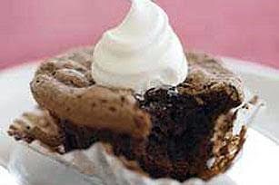 BEAT egg whites and sugar in medium bowl with electric mixer on high speed 3 min. or until tripled in volume. Reduce speed to medium low; blend in melted chocolate mixture until well combined. Spoon batter into 6 paper-lined medium muffin cups. (Muffin cups can be almost full.)