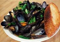 Mix in cilantro, basil, peanuts (optional) and salt to taste. Divide mussels and broth equally amoung four bowls, discarding any unopened shells and serve immediately.