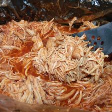 Add the tomatoes, soup, and spaghetti to the sautéed chicken, onion and green pepper mixture and gently fold.