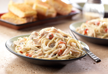 It takes just 25 minutes to make this luscious pasta dish featuring chicken, Parmesan cheese and a creamy mushroom sauce.