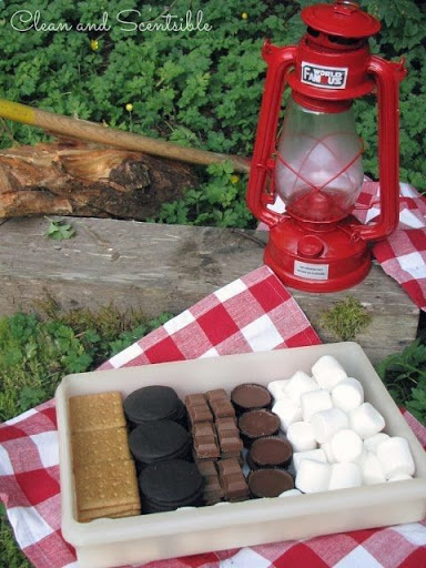 Compilation of ideas found smore box on clean and scentsible. Put smore making stuff in a plastic container with a cover.