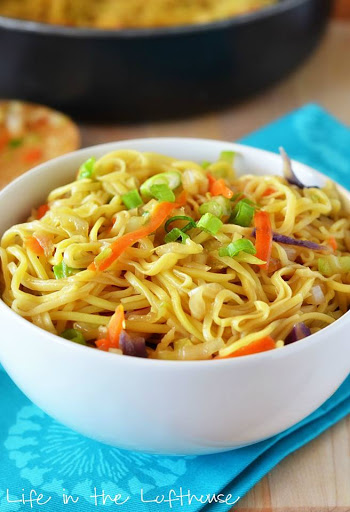 Bring a large pot of water to a boil. Add noodles and cook according to package directions. Drain water.