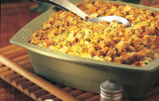 .3Combine potatoes and cheese in slow cooker. Pour soup mixture into slow cooker; mix well. Sprinkle stuffing mix over potato mixture.