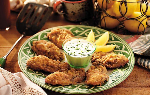 - 1 pint oysters or 1 pound catfish fillets, cut into quarters