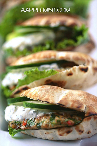 Mini Spiced Chicken Burgers with Mint Greek Yogurt