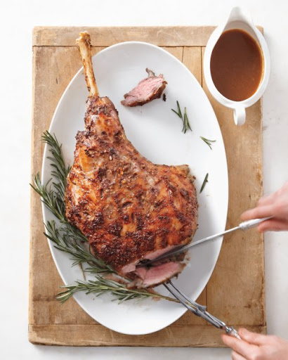 - 1 bone-in leg of lamb, aitchbone removed by butcher (7 to 8 pounds)