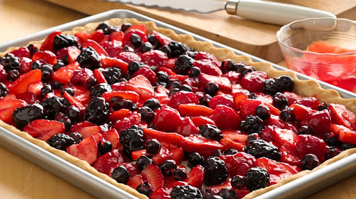 Heat oven to 450°F. Remove pie crusts from pouches. On lightly floured surface, unroll and stack crusts one on top of the other. Roll to 17x12-inch rectangle. Fit crust into ungreased 15x10x1-inch pan, pressing onto corners. Fold extra crust even with edges of pan. Prick with fork. Crimp edges. Bake 10 to 12 minutes or until golden brown. Cool completely, about 30 minutes.