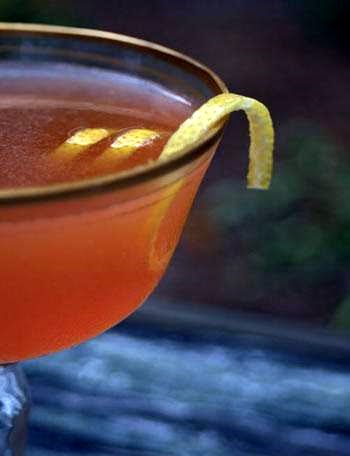 Shake ingredients with ice and strain into a chilled cocktail class. Garnish with a lemon twist.